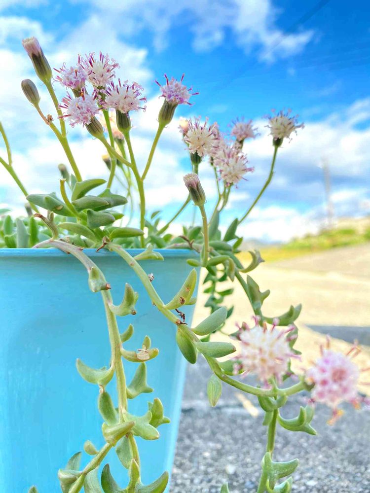 💙💚青空の下で、ピンクのお花が嬉しそう🌸💓🌸💓