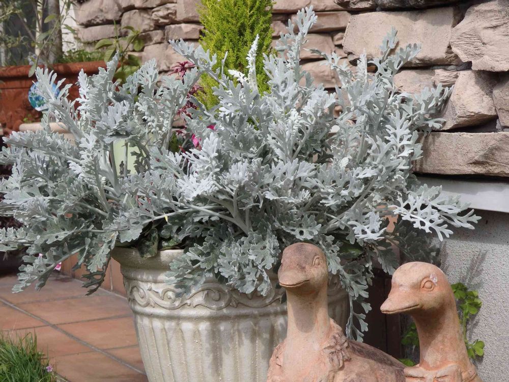 シロタエギク素敵です💖こんなお洒落な鉢に入って、すごい存在感です✨✨