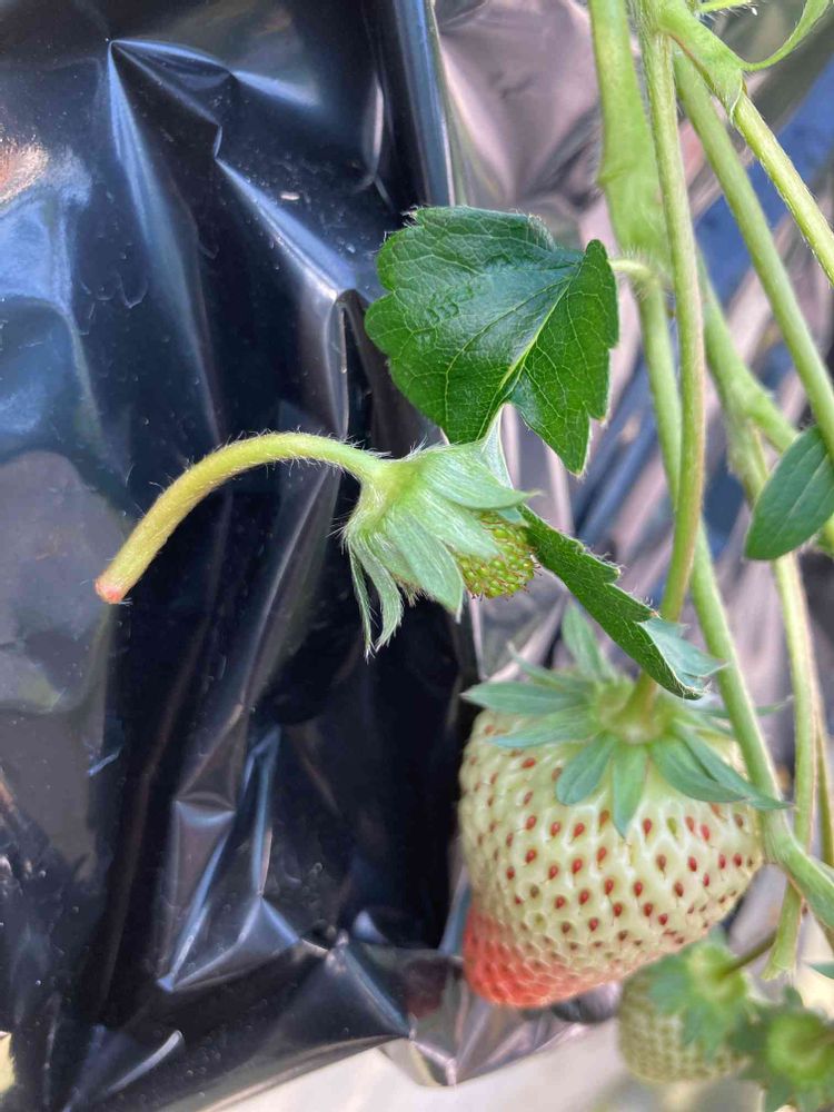 苺の実から葉っぱが生えてきてたり、2つの実がくっついたり、色々あるけど、元が切れてるのに他でくっついてるんは初めてっすね😅