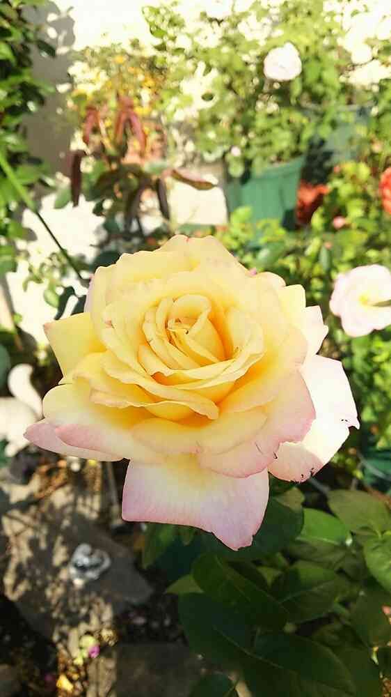 おはようございます(^^)ピースって花によって ピンクが強かったり黄色が強かったり個体差が面白い 主人が遺した薔薇の中で一番好きかも🌹今日も一日頑張りましょ🍀