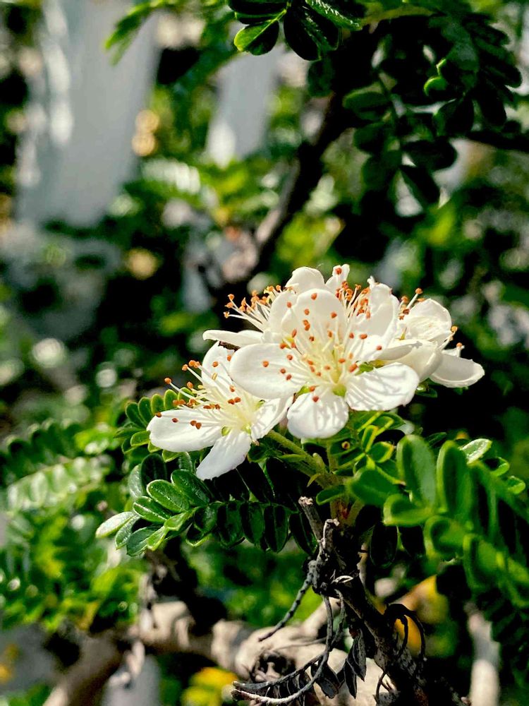 ネムノキの様な照りのある葉っぱと、白くて清楚なお花の組み合わせが好きです☺️💓