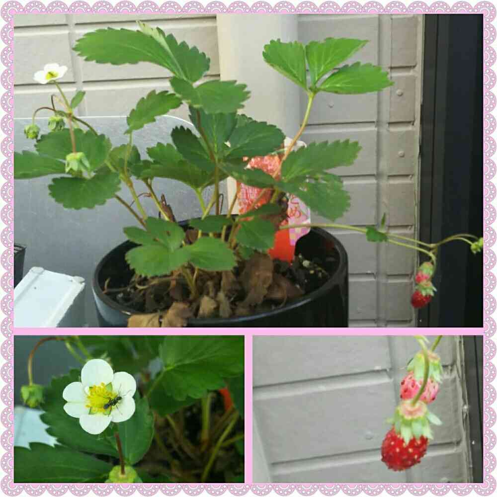 このイチゴの苗は今年の 2月に買ったものです。その時は大きいイチゴが食べられたけど、酸っぱかったの。