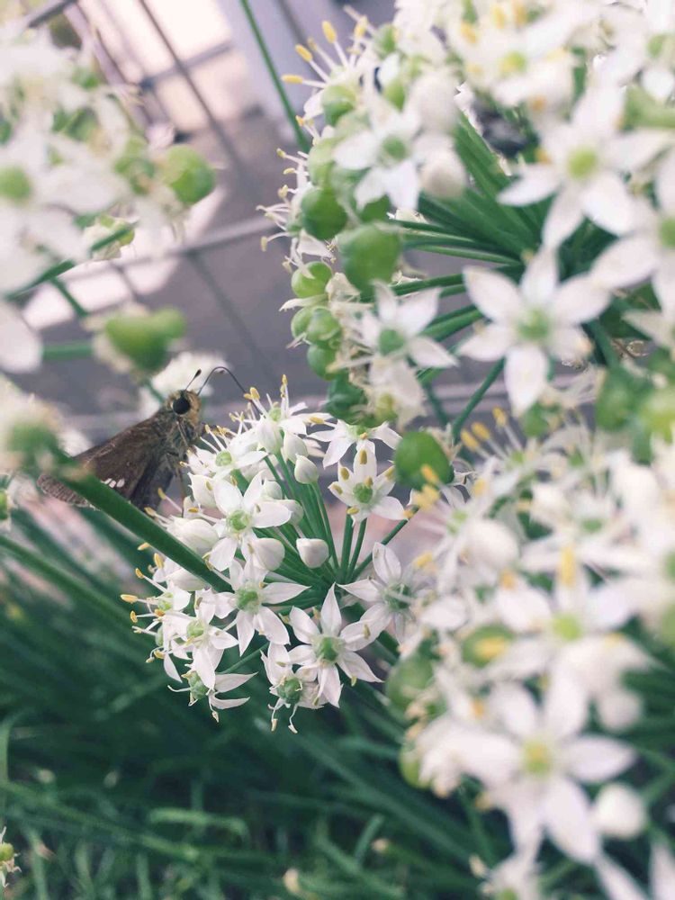 ニラの花が大盛況で色んな虫達が来てました😊