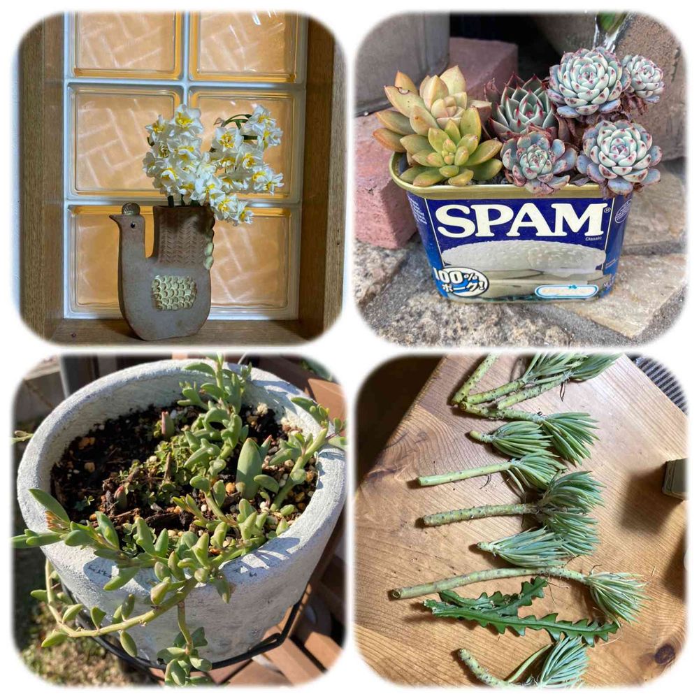 ↘️寄せ植えの名前のわからない子、下から芽吹いていたから思い切ってチョンパ!たくさんあるこの子達どうしましょう?
