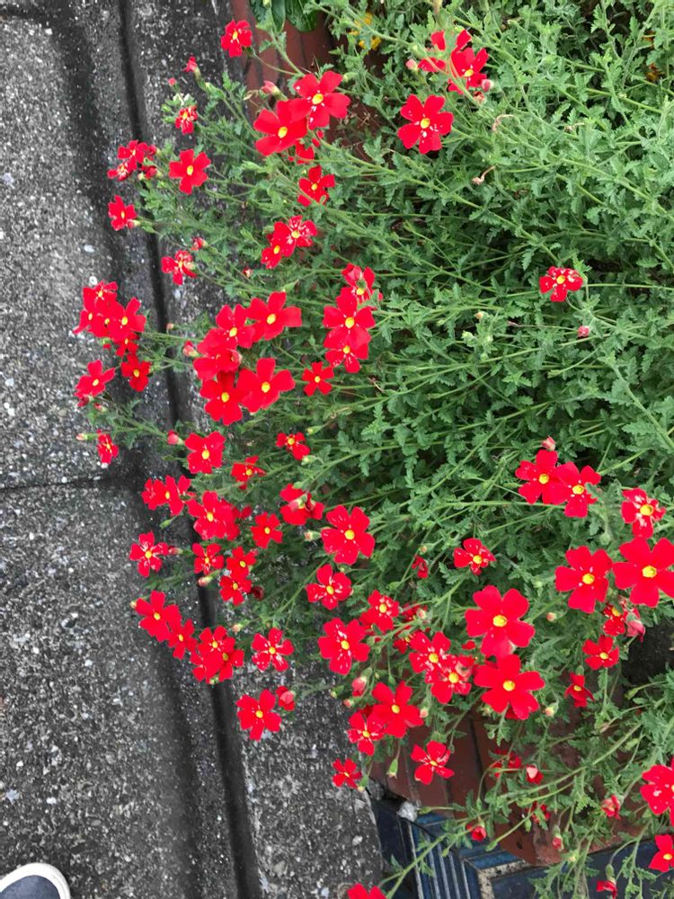 色鮮やかな赤い小花に目を引かれます可愛い花だな〜と見とれてしまいました。バーベナかな?