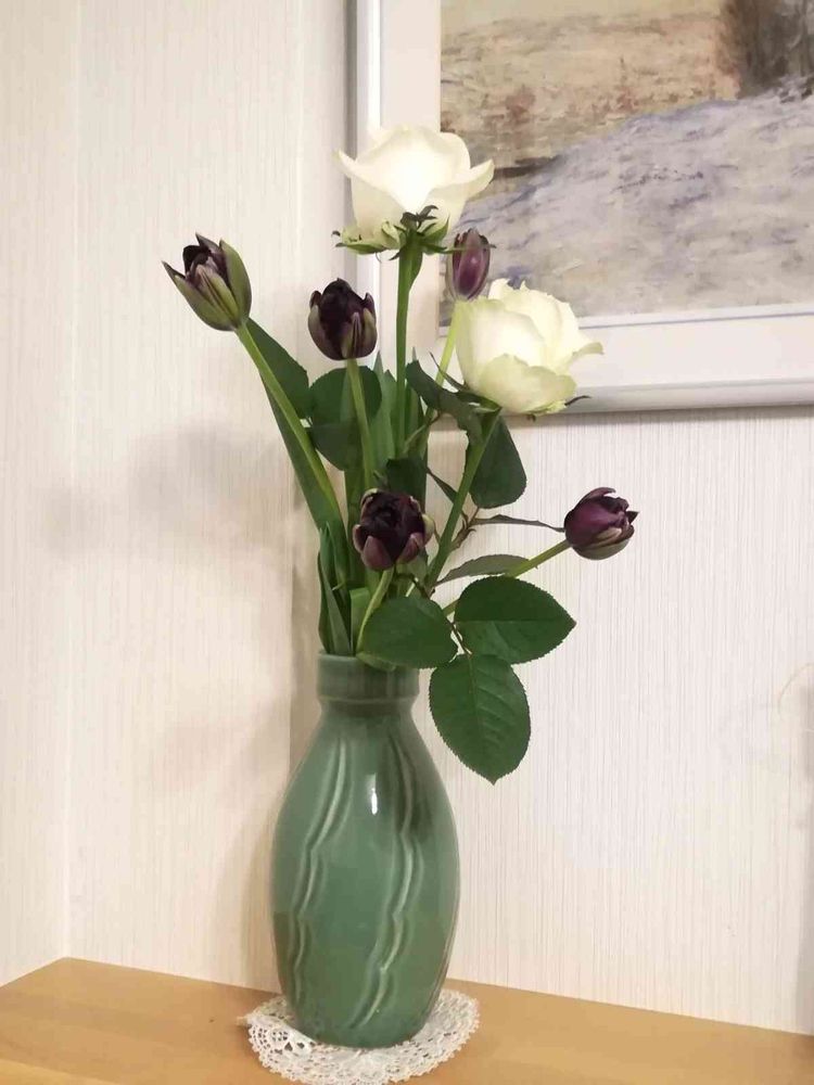 このブラックチューリップカッコ良いですね✨バラとの取り合わせの大人感好きです😊