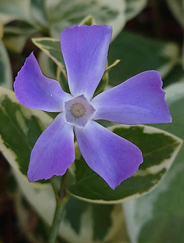 斑入り葉青紫色のツルニチニチソウの花が咲き始めました、綺麗です✨✨