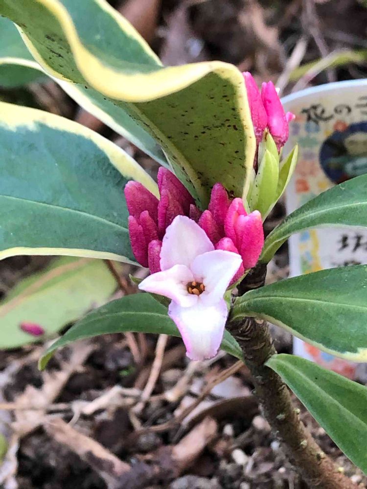 我が家の斑入りのジンチョウゲが咲き始めました😊💕
