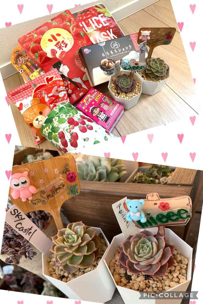 可愛い多肉ちゃんやお菓子、リメイク鉢など沢山入ってました(♡´艸`)