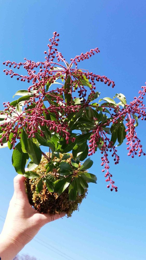 今はまだ蕾ですが白でもない濃い色でもない優しいピンク色で桜のような穏やかだけど主張のある馬酔木を苔玉にしました。
