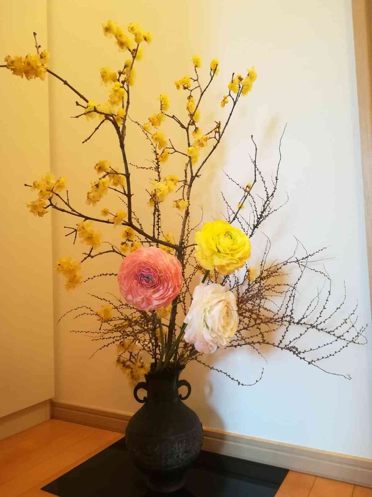 蝋梅とラナンキュラス、素敵な組み合わせ💕