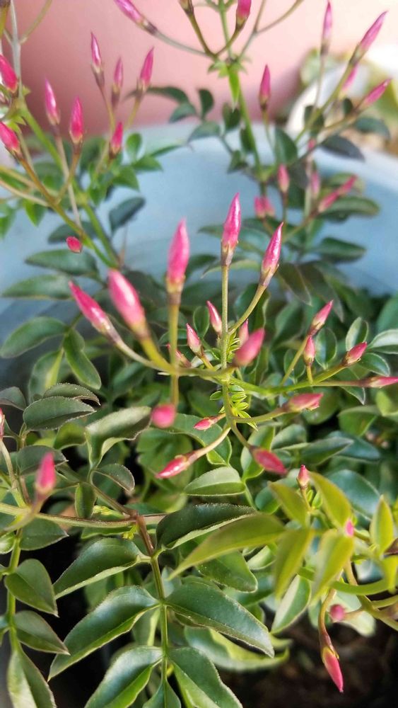 赤の蕾から白いお花私も楽しみです。ジャスミンの匂いはありますか❓いっぱい咲きそうですね🍀😌🍀
