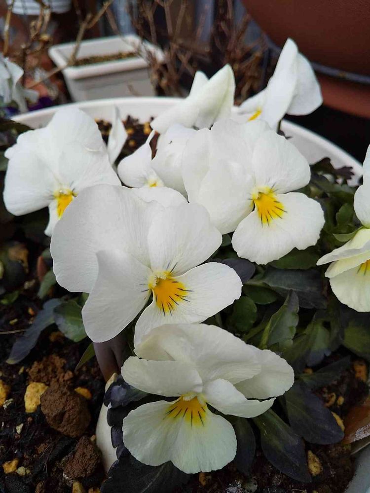 バルコニー/ベランダ,パンジー,よく咲くスミレ・ミルクセーキの投稿画像
