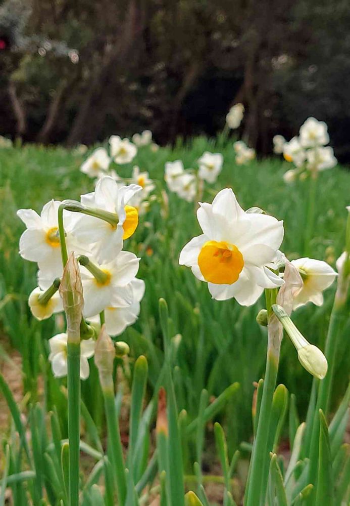 日本水仙の群集、綺麗ですね。質素で好きです。😉