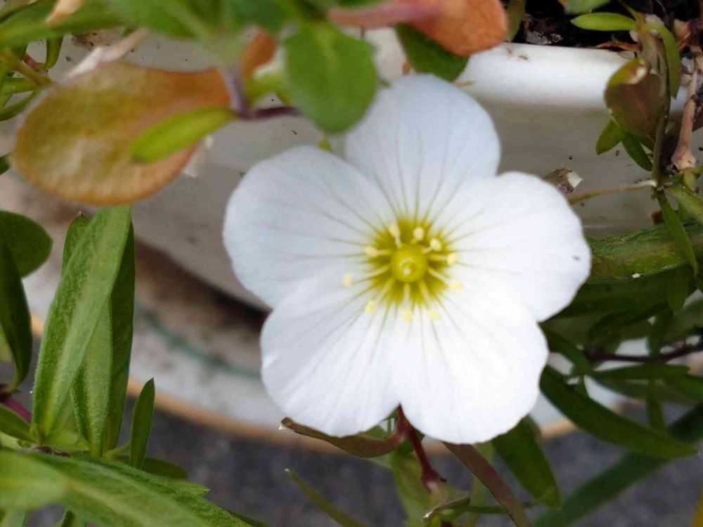 寄せ植えで植えられていましたが、切り戻したらやっと花を咲かせてくれました。名前がわかりますか?