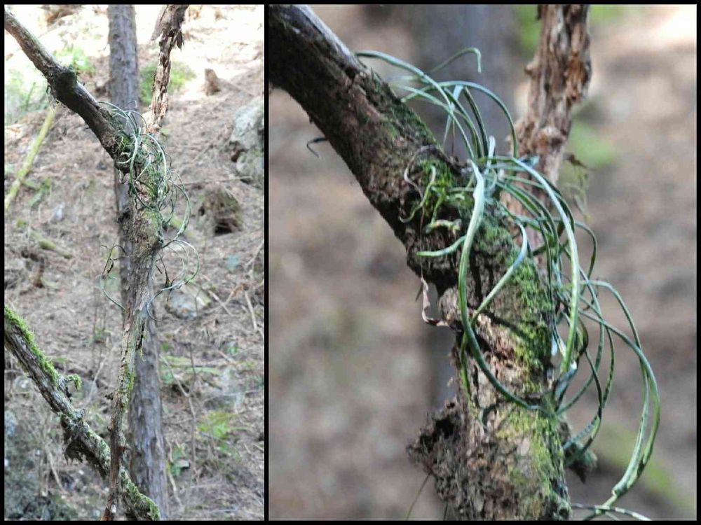 この山には滝もあって其処の岩場にも此と似たシシランとおぼしき植物が沢山下向きに生えていました。