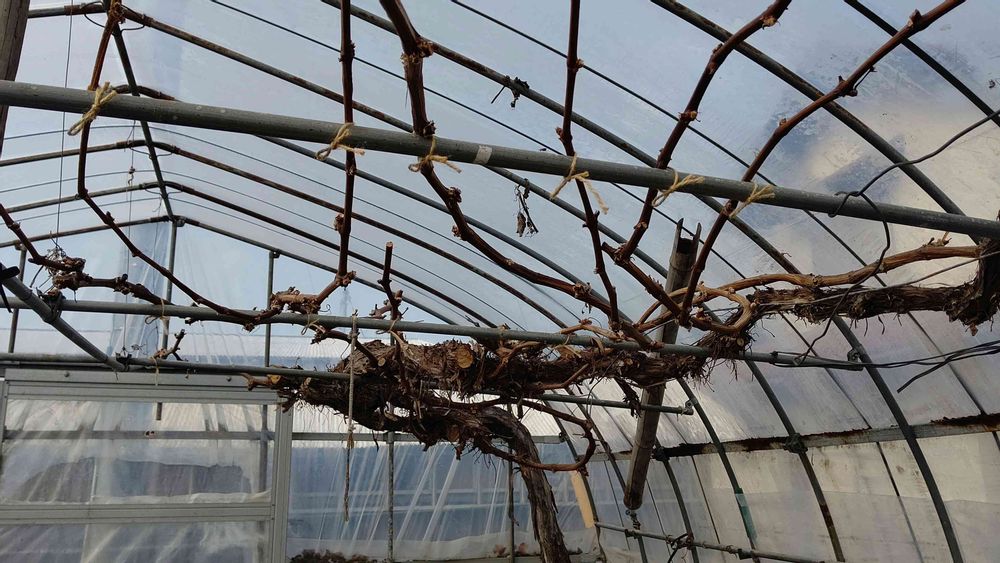 我が家、去年春に玄関先花壇に植えた2本のシャインマスカットが3m程伸びました。