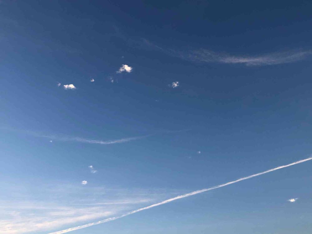 空を通過する飛行機が、〇〇発 ◎◎行き と調べられるアプリがあるそうで、公園で出会ったパパさんが「上海行きだよ」と教えてくださいました。
