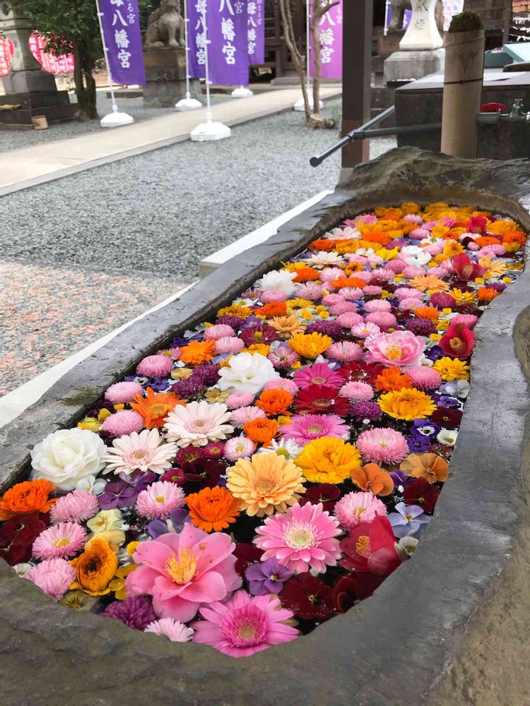 神社の花手水🌸🌼