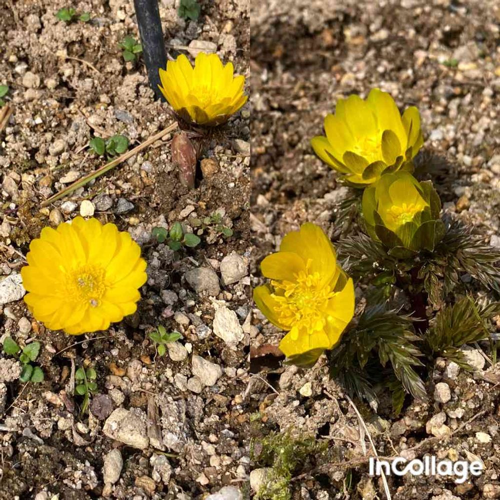 土の上でツヤツヤのお花🌼咲かせて。ほっこり暖かく感じますね。