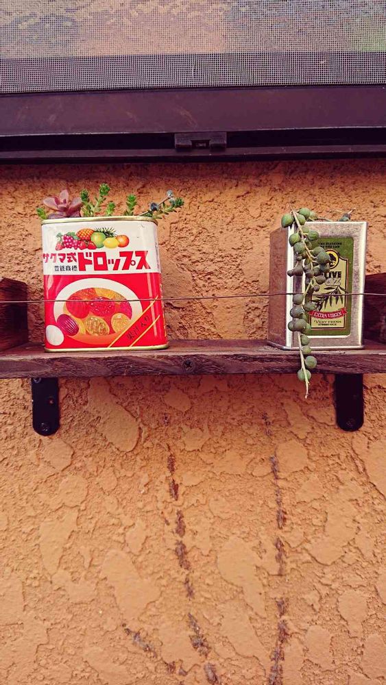 サクマドロップス缶、お気に入りです❗もっともりもりに植え直そう😁