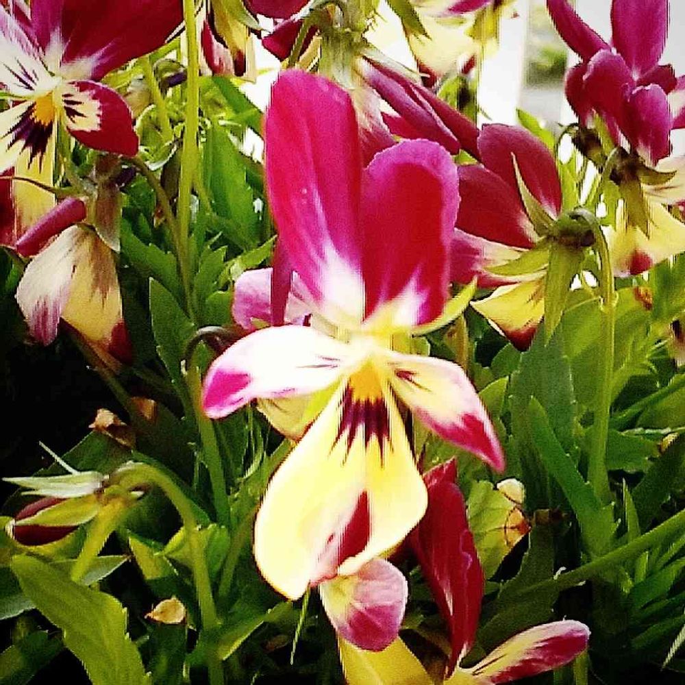面白い事にこの☝ビオラ、女性と男性の意見が違うんです。😲 女性は、ゆら さんの様にウサギ🐰ちゃんみたいで可愛いと言うし、男性は鬼女や魔法使いみたいでちょっと怖いなと言うんです。美的感覚が違うんですかね❓😂😂