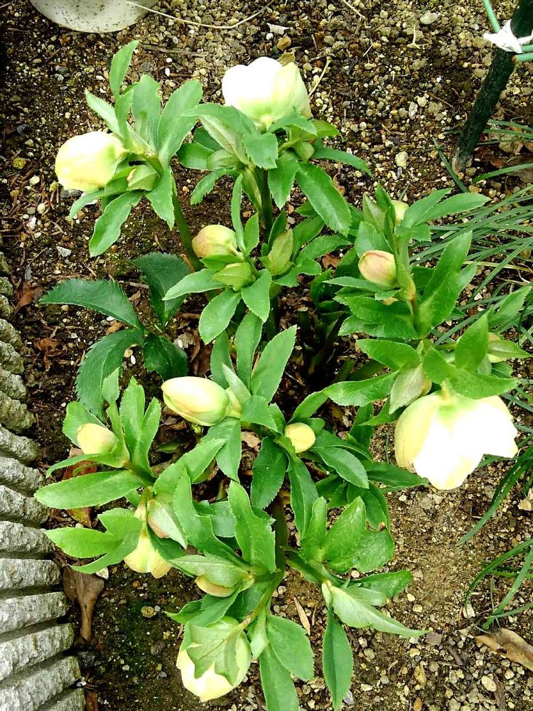 クリスマスローズ 1本の茎から二三個蕾が出てきました。 全部咲いたら凄いんですけど✨