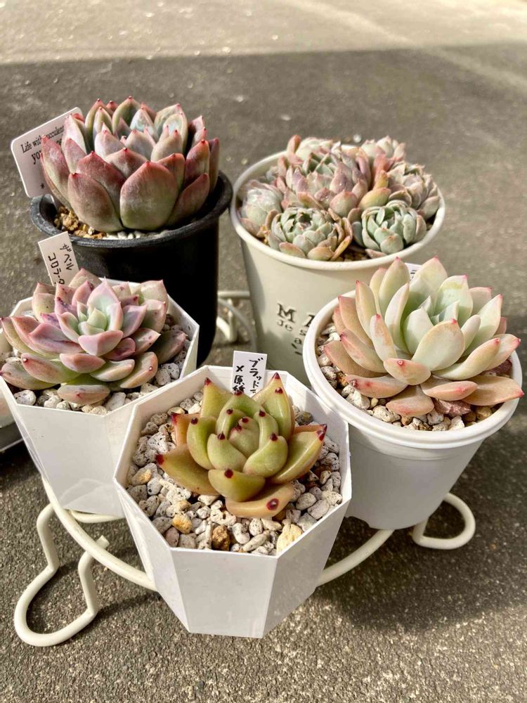 群生の子は残念ながら名前を知りません😅 多肉デビュー時からずっといるのですが、たしかお一人様で面倒見てたら成長点が潰れてしまい、ほっておいたらいつのまにか子株が沢山できたのでチョンパしてミニ丼にしました😆🎶