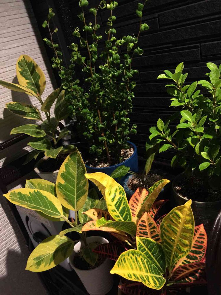 フィカスナナとベンジャミンバロックの間に挟まれたアロカシアは風呂場に置いてたのですが、元気がなくなり緊急避難してきました💦💦元気になりますように🙏🙏