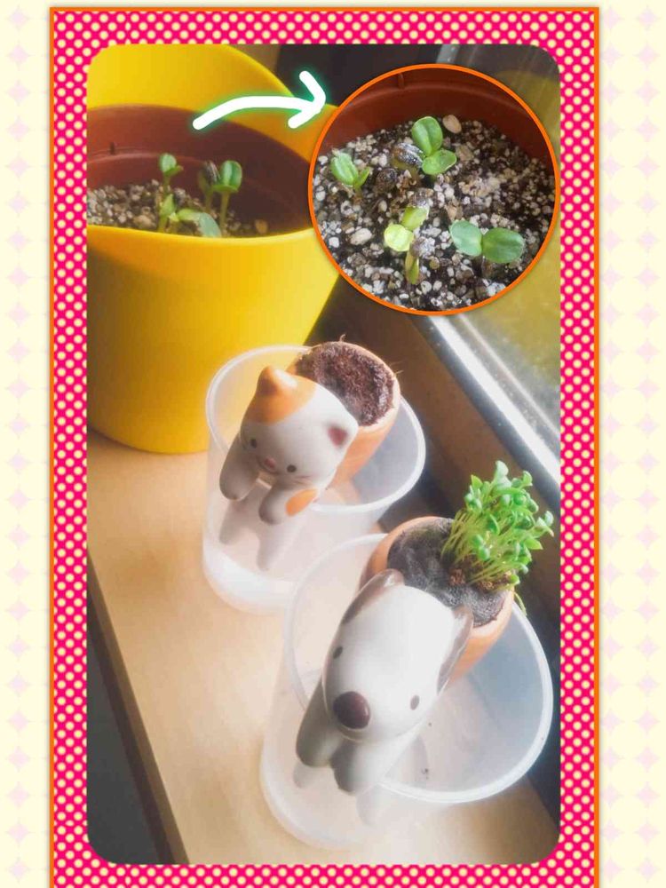 『しっぽん🐱🐶』の「クローバー☘️🐶」はたくさん芽が出ているので、少し間引きした方が良いのかな❓️