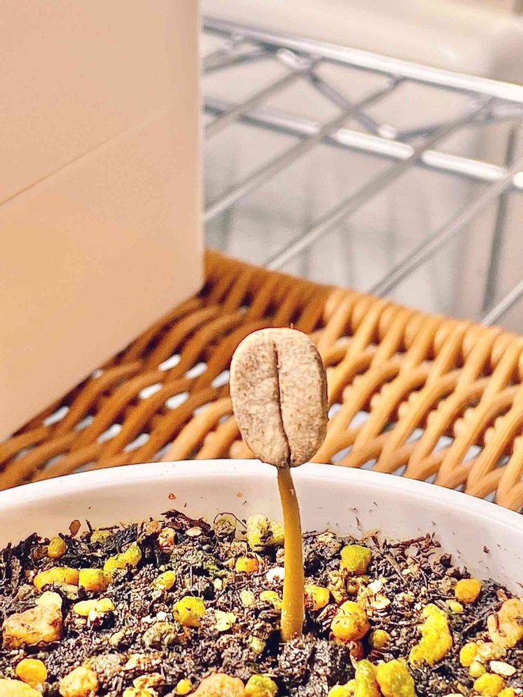 12月27日に蒔いたコーヒーの種、こんな姿になりました(◍︎˃̶ᗜ˂̶◍︎)_🌱✨