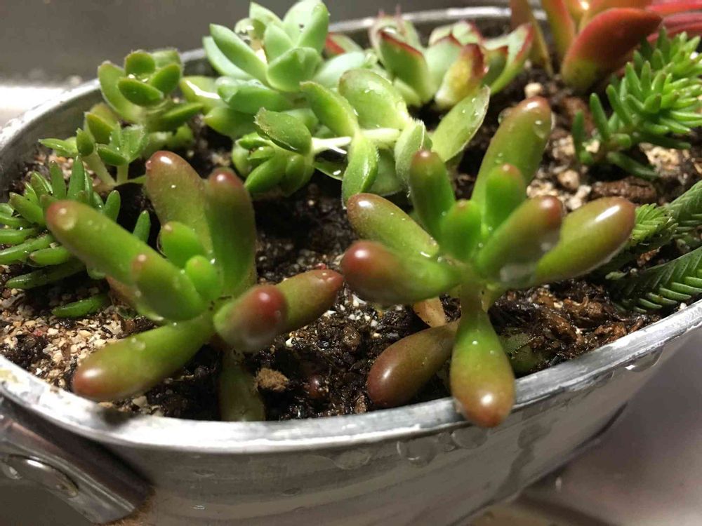 多肉寄せ植え、1週間窓辺に置いておいたけど、そよ風に土が💦💦💦