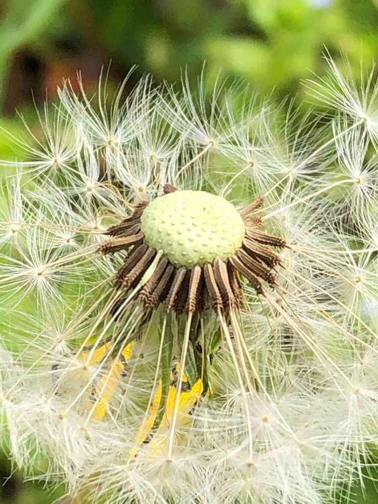 禿げ頭の左下、綿毛はあるのに、種になりきれてない子がひとつ。がんばれーo(・ω・o)♪