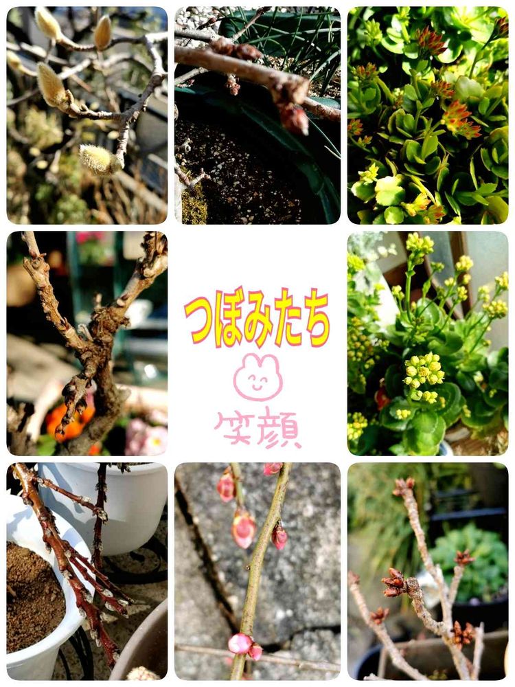 蕾ちゃん探してまわったら、どの子も春を待ちわびて、ほころぶことを、今か今かと良い笑顔で準備中でした♫