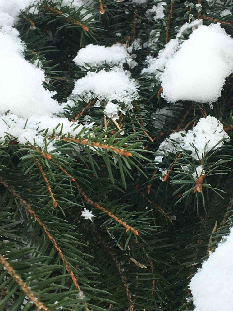 見て〜!ドイツトウヒの枝から下がっているのは、自然が作ったクリスマスオーナメント!小さい〜❄️