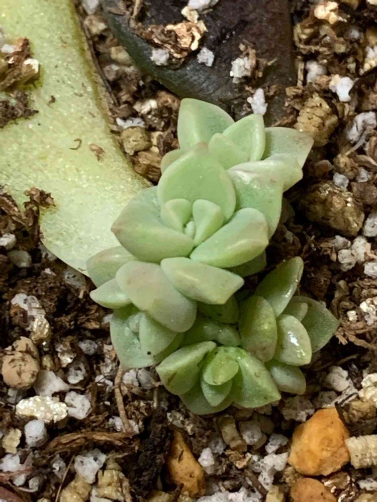 薄氷の葉挿しっ子ちゃん💖葉挿しはよく多頭になりますが、この子は驚きの5頭‼️只今急速に成長しております🤣🤣🤣