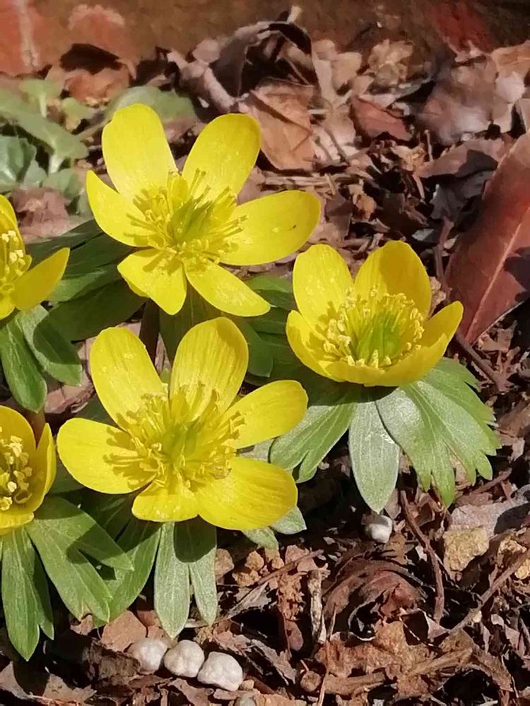 これも山野草で野山に咲いているのかな? 落ち葉の中からモッコリ👍