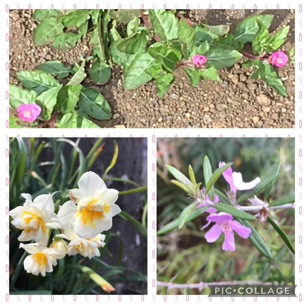 昨日の買い物で見たアカバナユウゲショウ、これからずっと、たくさん咲きますねー。八重咲きの水仙やローズマリーも、陽だまりで、きれいに咲いてました。家の庭は、午前中しか日が当たらないので、水仙やチューリップ🌷も葉が少し出てるだけです。早く見たいのに^o^。