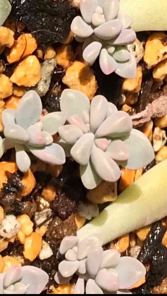 私も寄せ植えからぽろっと取れたコの葉挿しちゃん 育ってきたけど、虹の玉ちゃんか乙女心ちゃんかわからず。