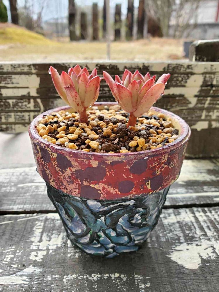 多肉ちゃんも可愛くて、リメ鉢も相変わらずのカッコ良き❤
