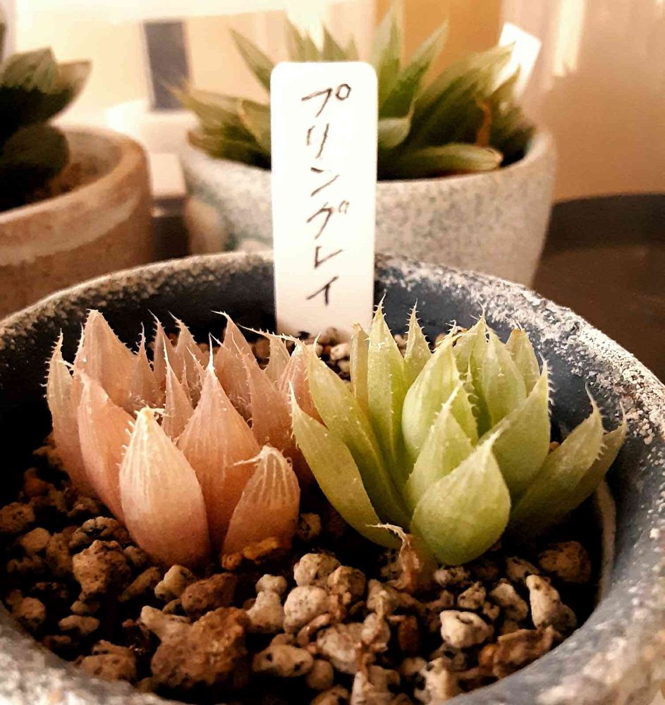 多肉永遠さんで購入したハオルチア プリングレイです。最初はどちらも左側にあるものと同じピンク色をしてたんですけど、いつの間にか薄いグリーン色に変わってしまいました。もしかしたら肥料が効き過ぎるとグリーン色に変わるのかもと思っています。斑入りのエケベリアも肥料が効き過ぎると斑入り部分が少なくなる可能性もあると思います。