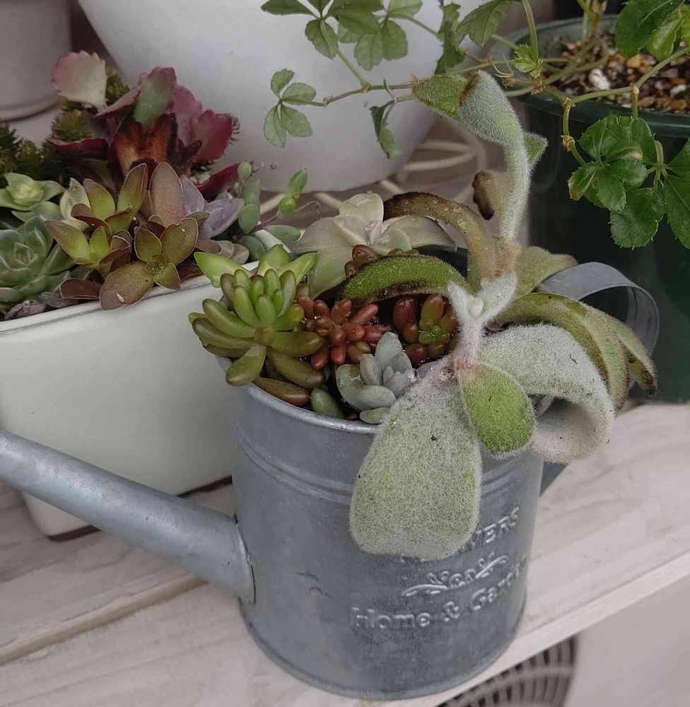 昨日 HCからお迎えした半額の多肉ちゃん 我家にいた葉挿しちゃん達を集めリメーク🌱