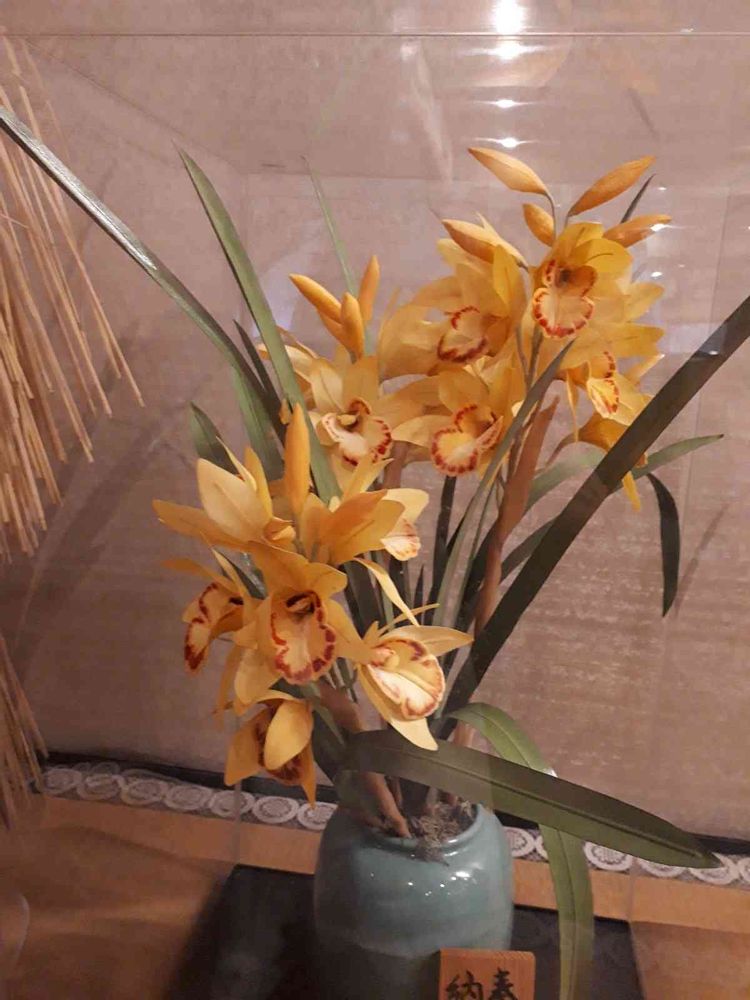笠間稲荷神社待合室にて。シンビジウムのアートフラワー奉納展示品。②凄い❢の一言(ღ*ˇᴗˇ*)。o♡ウットリ♡