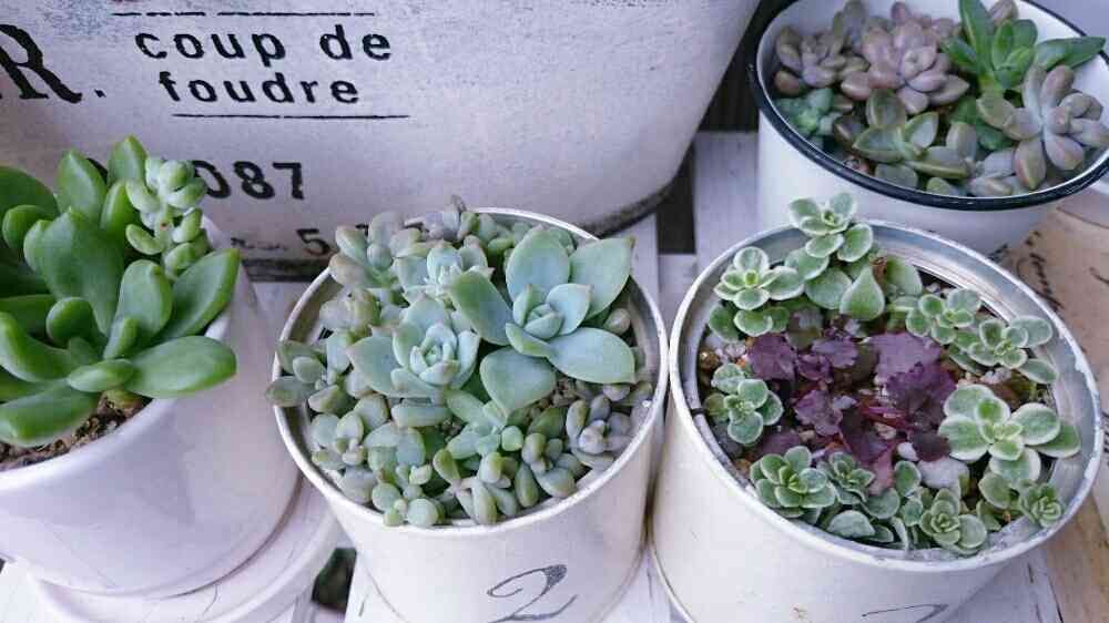 子株のファンクィーン三姉妹を寄せ植え、
