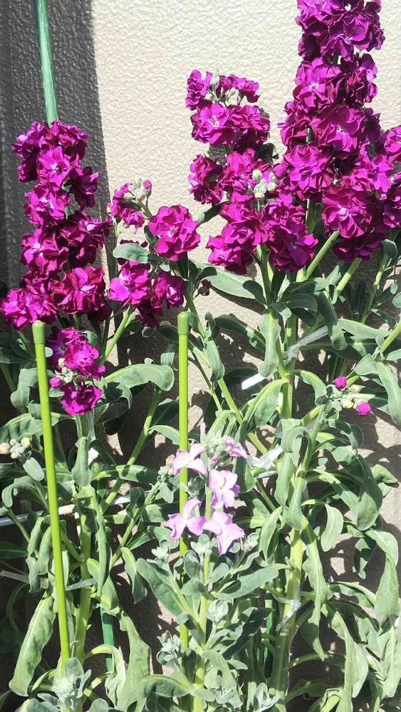 紫のストックも先月末よりたくさん花をつけて ボリューミーになりました😊 薄ピンクのストックと同じ花とは思えないです💦