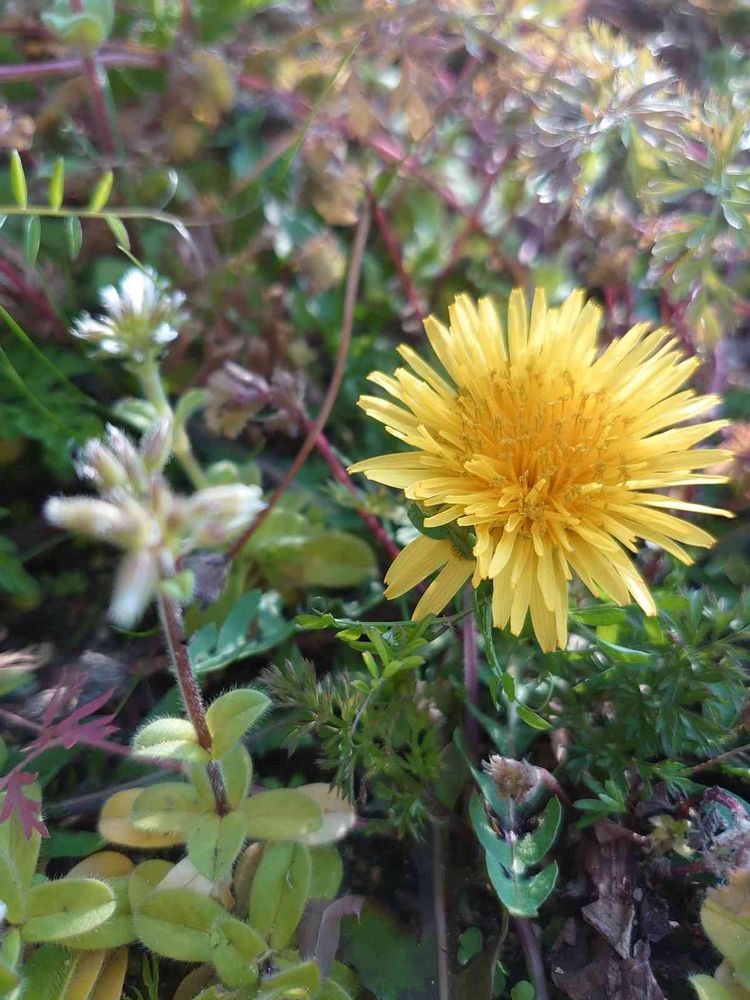 畑の人参畑の雑草にまぎれて一輪のタンポポが咲いてました🏵️