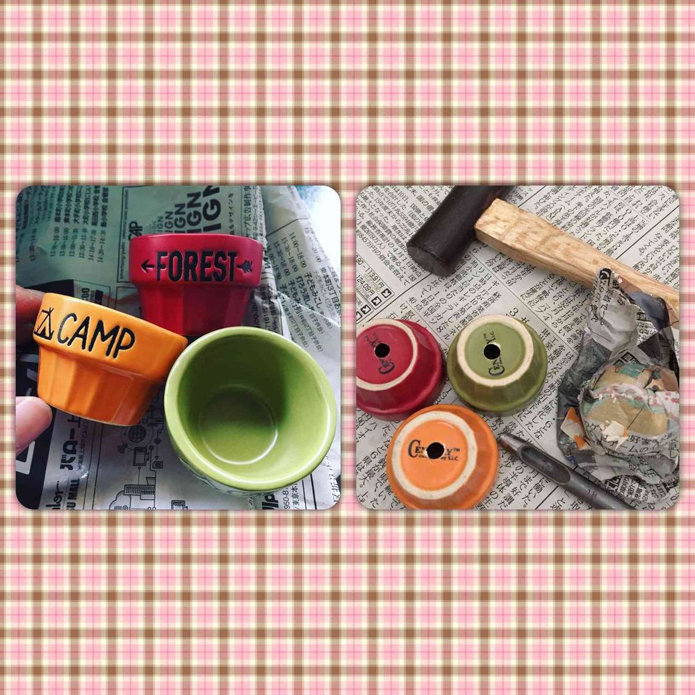 セリアで買って来た陶器のちっちゃい器にガンガン穴開け。