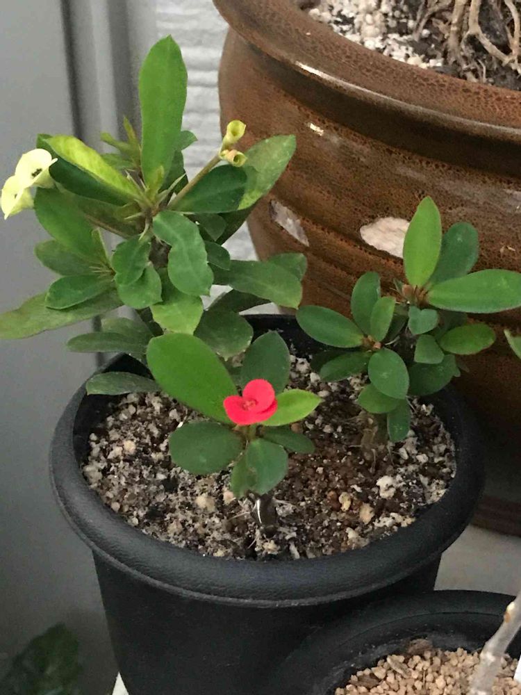 ダイソー産ハナキリン、赤い花が咲きました(笑)