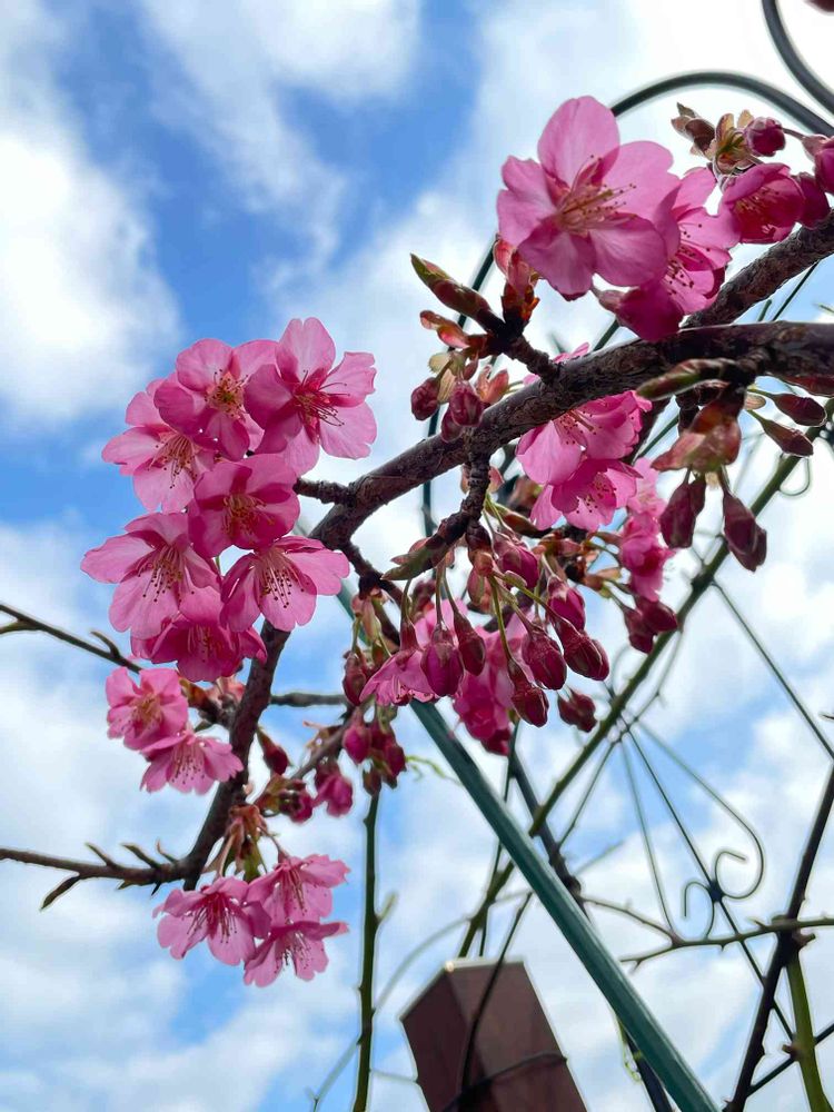 アプローチに置いている鉢植え河津桜さんがだいぶ開花してきました!