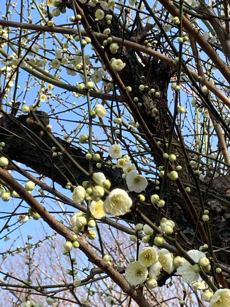 特に蕾は、緑色が強く感じられます。普通の白梅より爽やかな色合いでした😃